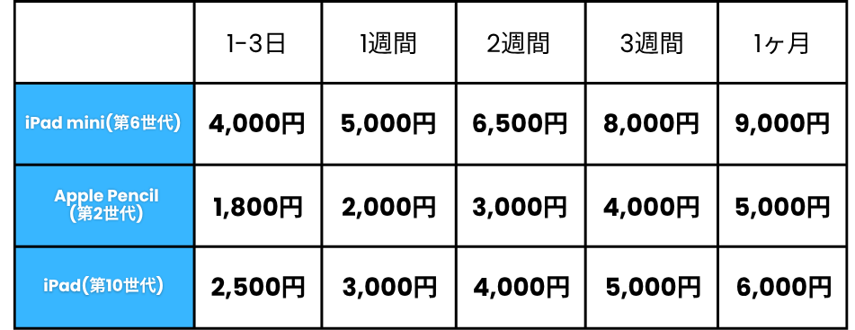 カリナイトでは、iPadの最新機種全モデルを取扱中です。